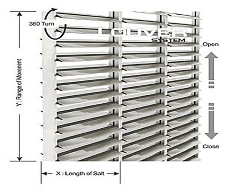 louver는 건축재료로서 직사광선을 피하면서 광선을 투과시키기 위한 즉, 통풍에 지장없이 부드러운 채광이 가능하도록 판자형의 재료를 가지고(유리, 알루미늄, 우드) 미늘형으로 짜맞추어 설치한 기구를 말합니다.