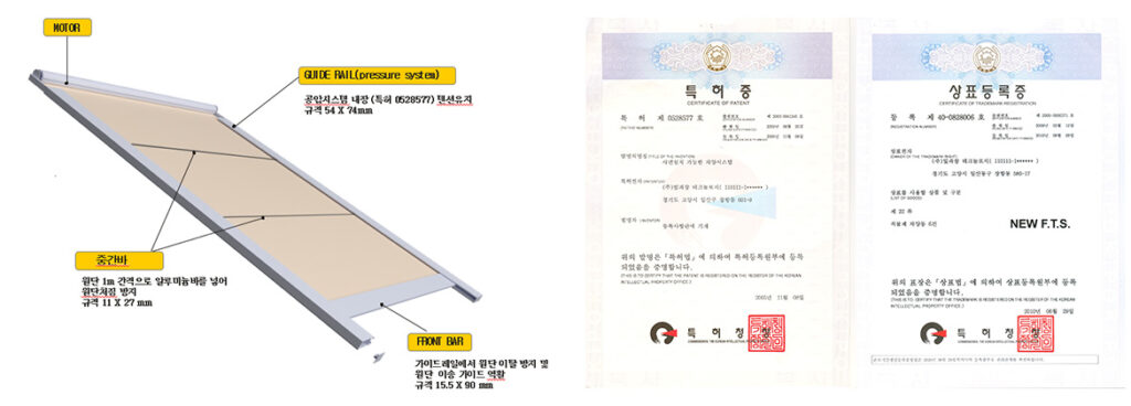 - 공압장치와 원단가공에 의한 수직, 수평 텐션유지로 장기간 사용에도