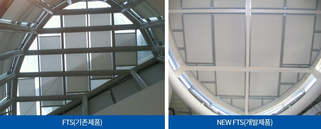 - 기존 구조체에 단일화 된 제품 설치로 미관이 단조로우며, 중력에 의한 원단 처짐현상이 없음